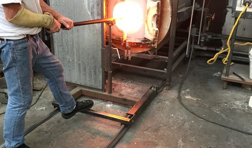 Raised in the suburbs of Chicago I had no artistic intentions other than to build nice forts. I did find a passion for photography at a young age. Today photography makes me stop and smell the flowers. February 21 2016 is when I used a Goupon coupon taking a introductory class blowing class. I had a follow up class the following weekend, in which I made a drinking glass ( in the glass world glasses are called vessels), paperweight and a blue bowl in which I still keep my keys. I inquired with the instructor as to what now since my Groupon glass classes had come to the end. Private lessons I started private lessons twice a month March 17 2016 at Slow Burn Studio in Oakland California. I'm extremely fortunate to have landed at the Slow Burn Studio. My instructor Bryan Goldenberg who has twenty plus years experience has been an outstanding influence. Bryan is the owner of the Slow Burn Studio as well a extremely accomplished artist. Two lessons month were not enough and Bryan wasn't available for more. So July 2016 I started lessons at a non profit "Public Glass" located in south San Francisco. I went with the standard protocol of lessons at Public Glass until the lessons were enough either. Reading the schedule for Public glass classes I ran across a class for fusing and blowing. I was captivated with the idea of fusing together pieces of art glass. Then taking this flat piece of glass to the hot shop studio and then roll it into a vase, bowl, vessel, roundel spun out plate. December 2016 Bryan and I rolled up my first two pieces, a cute little basket style vessel and Dixie cup style piece. Both of which I love and hopefully keep for myself. The only pieces I presently claim as mine forever are the super glued pieces. My Public glass education was pumped up in August 2016 when I started lessons with a very cool private instructor Ian Whitt. Ian is a phenomenal glass blower who lives and breaths hot glass. His perfectionism is off the hook, to the point of I'll be begging to put the piece away before a disaster strikes and satisfied with the piece. Ian's response would be " Why don't you doll it up some before we put it away". I am blowing hot glass in 3 hour sessions four times a month at Public glass down from eight sessions a month through 2016 -2017. Warm glass started August 2016 after becoming convinced I needed to fuse and then roll up the glass. I converted the dining room into a glass fusing studio and I was off and running. My kiln runs on 15 amps of electricity making it possible to fuse glass in a residential environment safely. I added a ring saw after seeing a demonstration by a local artist. Examples of my ring saw work such as lettering and various cut outs can be found in my gallery. My mind is often swimming in thoughts of glass. I feel the possibilities are endless and I am but a infant with so much to experience. A encouraging thought is even the top gaffers never stop learning. I recently enrolled in a class recently intoducing me to kaleidoscope techniques for glass fusing. This February 2 2018 I should be rolling up my first kaleidoscope piece. With two Incredible instructors, lots of hard work and a passion, I will continue to experiment and create .